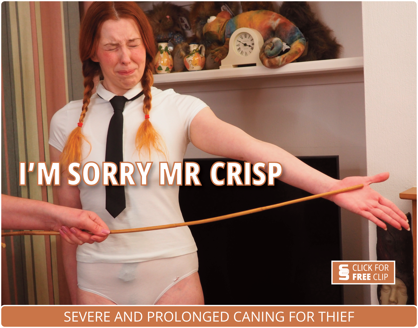 Alora Lux has been caught stealing knickers from a local store and one of the school governors, Mr. Crisp has demanded she be given the most severe punishment for this. She must stand and confess what she has done and she then has to tell everyone what her punishment will be. Dressed in her school uniform and then with her skirt removed and her school knickers pulled up tight she has to take a most severe and prolonged caning on both hands. This continues despite her tears until the allotted number of strokes have been delivered.