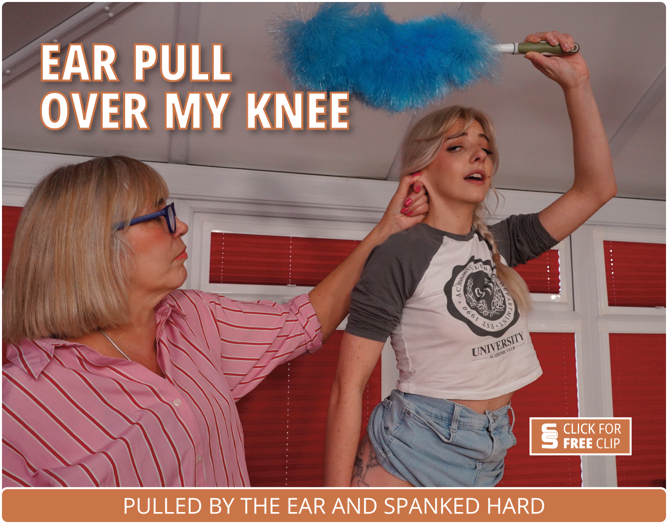 Gabie is my cleaner but quite frankly she is not very good at it. When I catch her red handed trying to steal from my purse I am far from happy. I threaten to drag her down to the police station by her ear. She pleads with me so I give her a choice. She can lose her job and face prosecution or I can pull her around the house by her ears and spank her bottom hard.